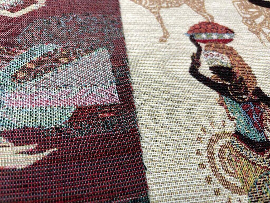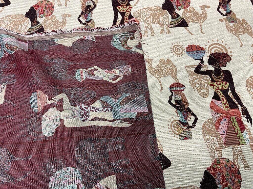 Tissu est assez épais avec de la tenue de belle qualité, idéale pour l'ameublement, pour recouvrir un fauteuil, pour faire des tentures,