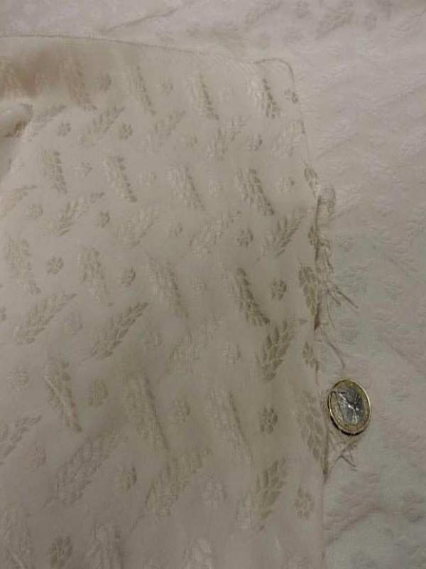 Gabardine coton 100% blanc légèrement cassé 205 gr m² en 1.45 m de large....9,00€ TTC