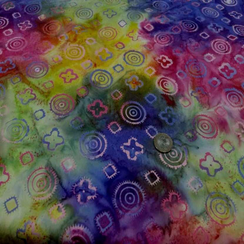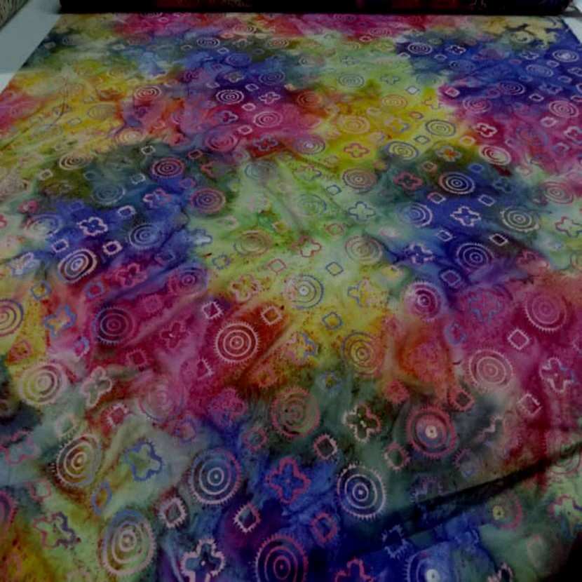 batik motif fondu ton rouge,jaune,orange,vert,bleu