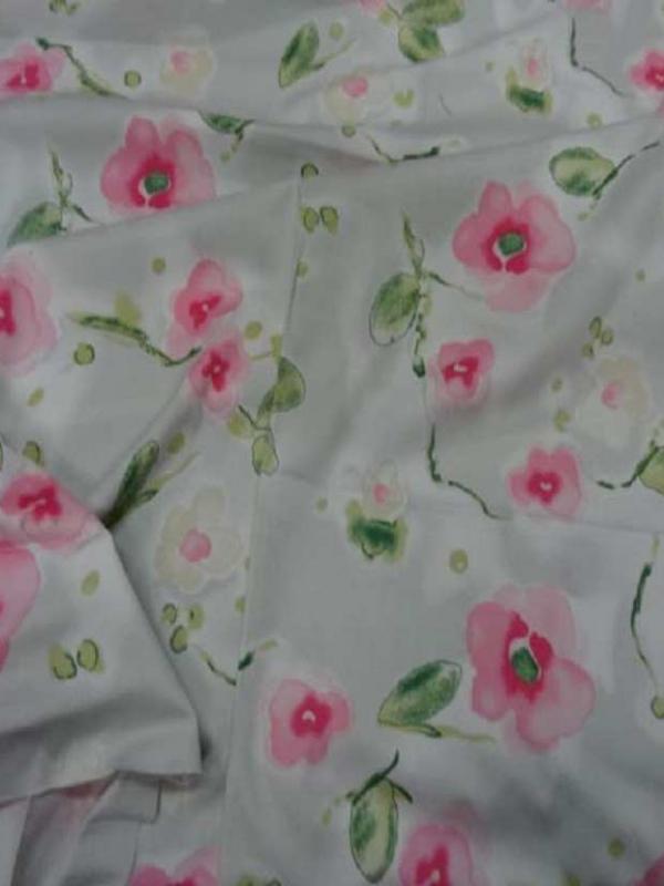 popeline coton blanche imprimé fleurs rose,blanche en 1.45m de large