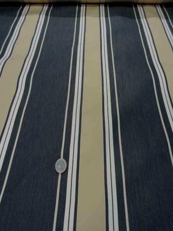 TOILE COTON D AMEUBLEMENT BEIGE A RAYURES GRISE