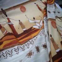 coupon de batik motif masque africain ton beige,marron 1.60m
