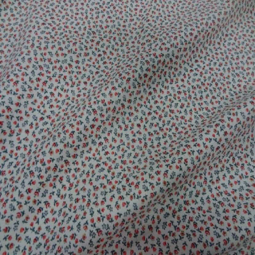 coton blanc imprimé petite fleurs ton rouge en 1.40m