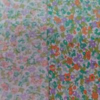 Coton popeline blanche imprimé liberty fleurs ton vert ,mauve et orange