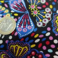 Coton popeline noire imprimé liberty papillon jaune,bleu,rouge