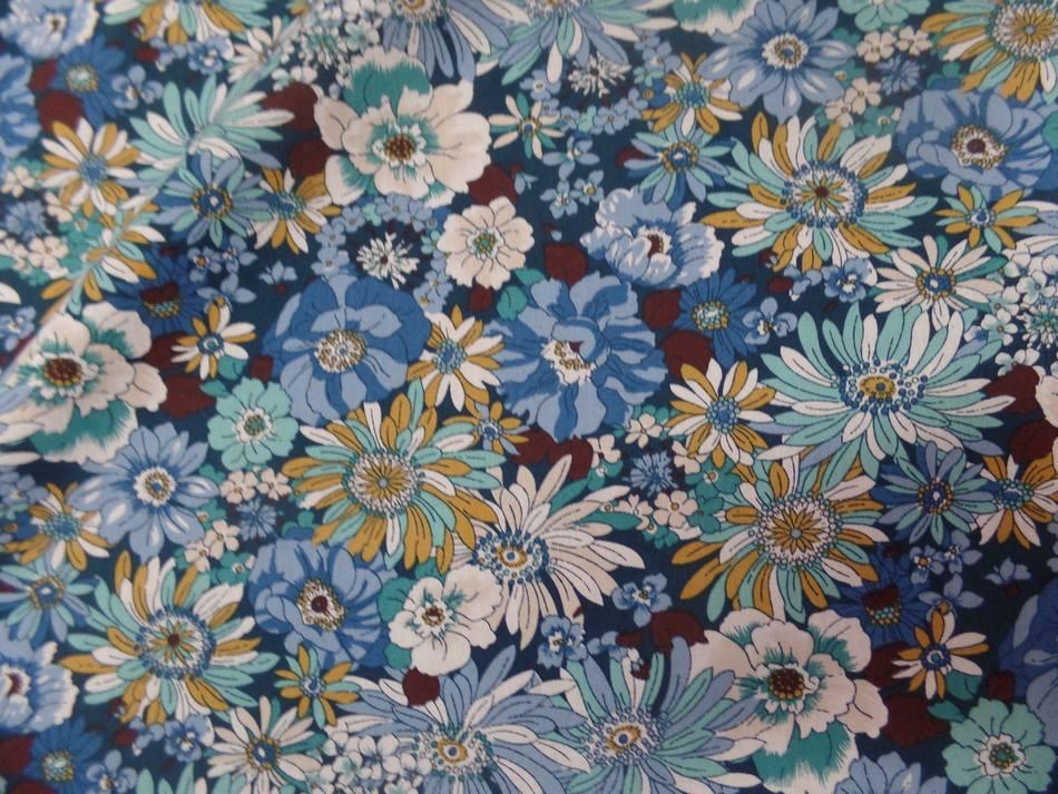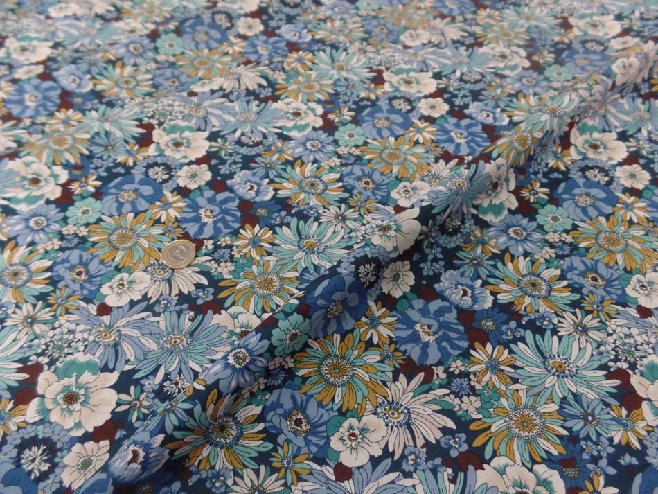 popeline coton 100% imprimé fleurs ton bleu,blanc,vert,