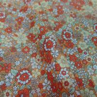 coton popeline orange imprimé liberty motifs petite fleurs ,