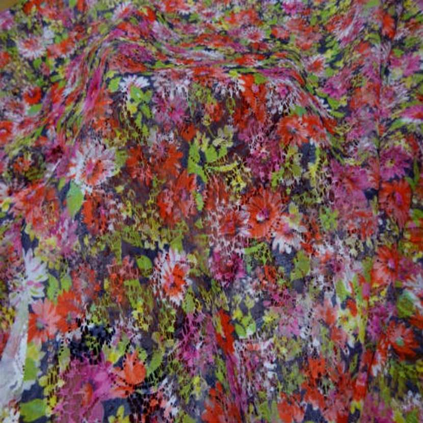 cette dentelle imprimé multicolore mesure 1.50 m de large , tissu qui conviendrait pour faire des vêtements ,pareo , robe etc .. ou en tenture ,pour la décoration etc ...