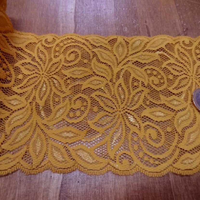 CE GALON DE DENTELLE MESURE 15 cm DE LARGE . C EST UNE RÉSILLE LÉGÈREMENT EXTENSIBLE . IDÉAL POUR RÉALISER ,VÊTEMENTS , COSTUME DE SPECTACLE OU EN DÉCORATION.