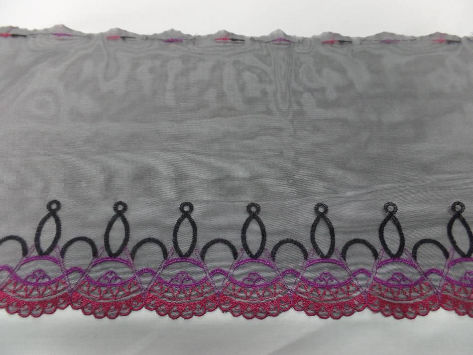 galon de résille prune brodé fleurs en 19cm ce galon mesure 19cm de large . il est légèrement extensible...2,50€ TTC