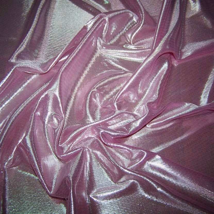 jersey laser rose lamé extensible dans la largeur, c est un tissu assez fin et pas transparent et très souple , il peut être utilisé pour faire des vêtements, costumes de spectacle ,pour la décoration