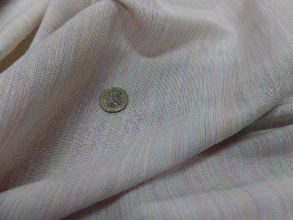 tissu lin a rayures beige ,blanc cassé et jaune safran