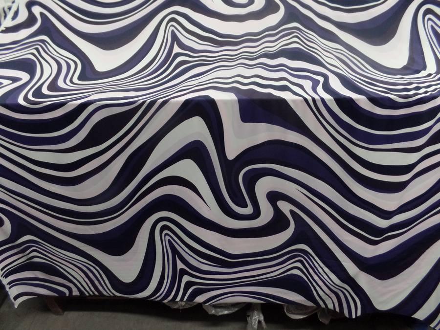 lycra imprimé année 70 ton blanc,violet,rose et noir qui est extensible lycra dans les 2 sens . tissu léger et résistant ,pour réaliser : maillot de bain ,juste au corps ,vêtements , costume de danse .
