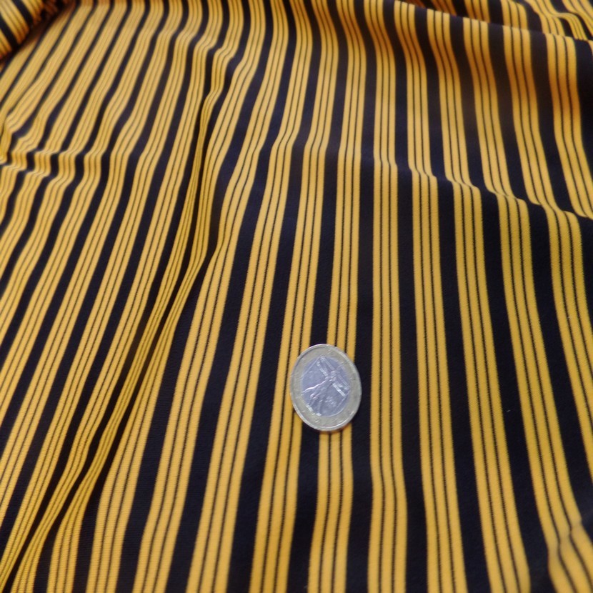 taffetas jaune doré a bandes a chenille en 1.45m de large , c est un tissu fin et souple avec une légère...8,99€ TTC