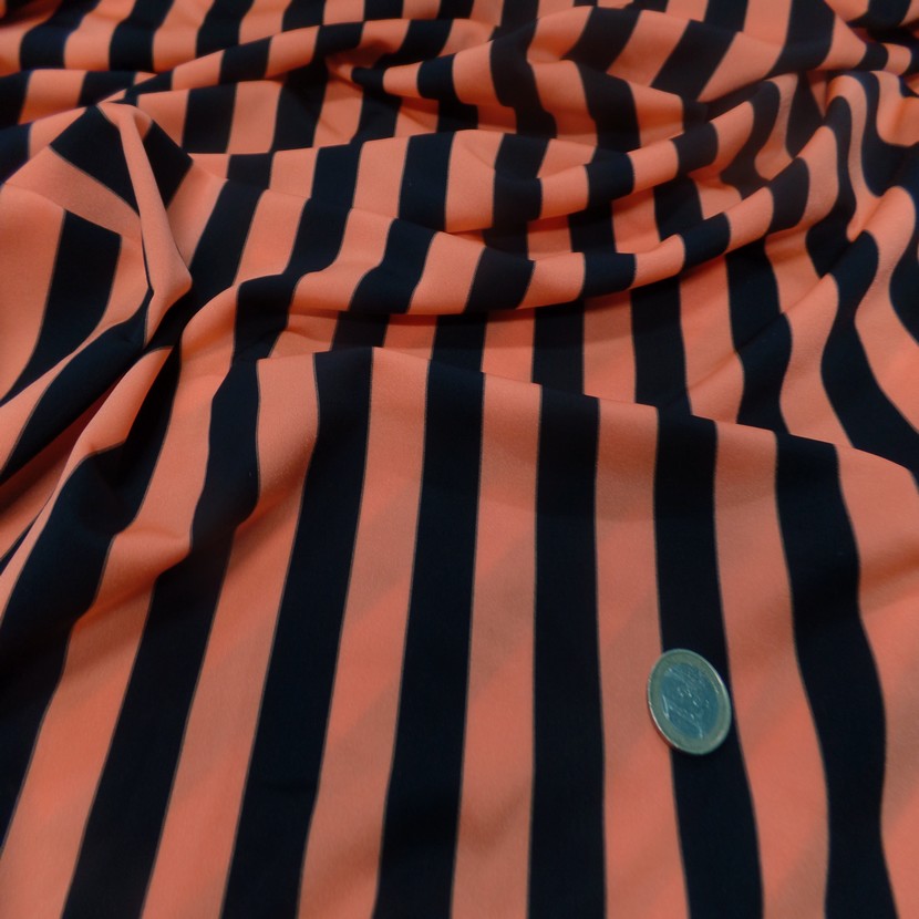lycra satiné a rayure noire et orange .
