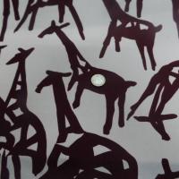 lycra satiné double face imprimé girafe ton écrue et marron .