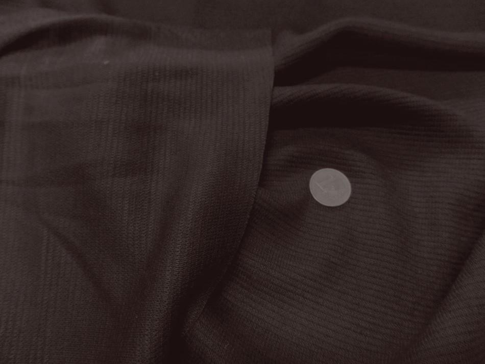 Maille à fines cotes polyester viscose, tissu souple et doux au toucher, bien extensible, lycra dans la largeur.