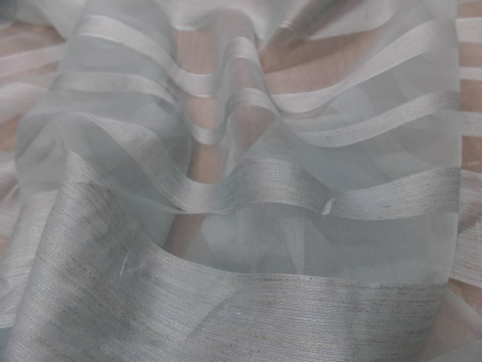 organza de soie façonné a bandes dans la largeur , étoffe très souple ,légèrement transparente , elle a un touché très doux et très agréable organza de soie 100%