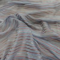 mousseline de soie bleu a rayures gris,marron en 1.40m de large.