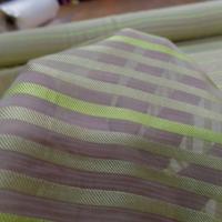 mousseline fine façonné a bandes dans la largeur , étoffe très souple ,légèrement transparent , elle a un touché très doux et très agréable mousseline de soie 100%