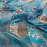 Voile de soie façonné froissée permanent feuillage blanc,argent