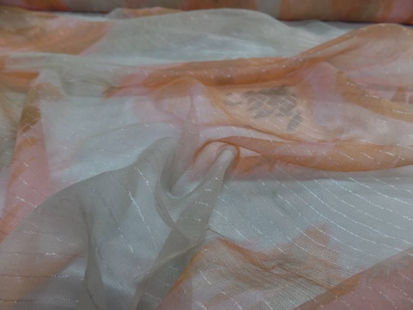 mousseline de soie saumon imprime a bandes lurex