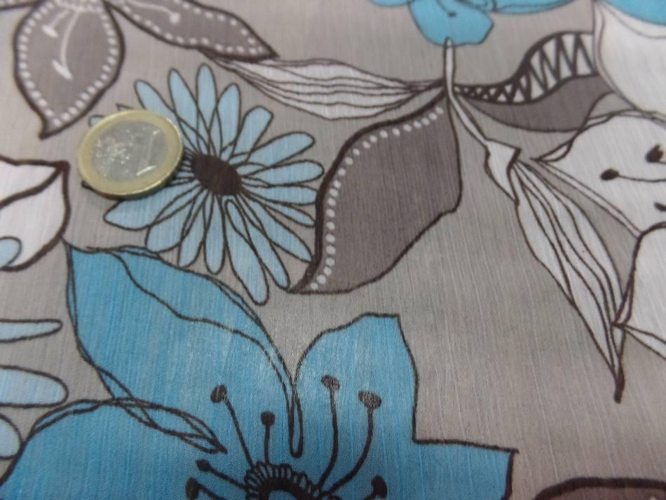 mousseline crépon imprimé ton gris ,taupe ,blanc ,bleu