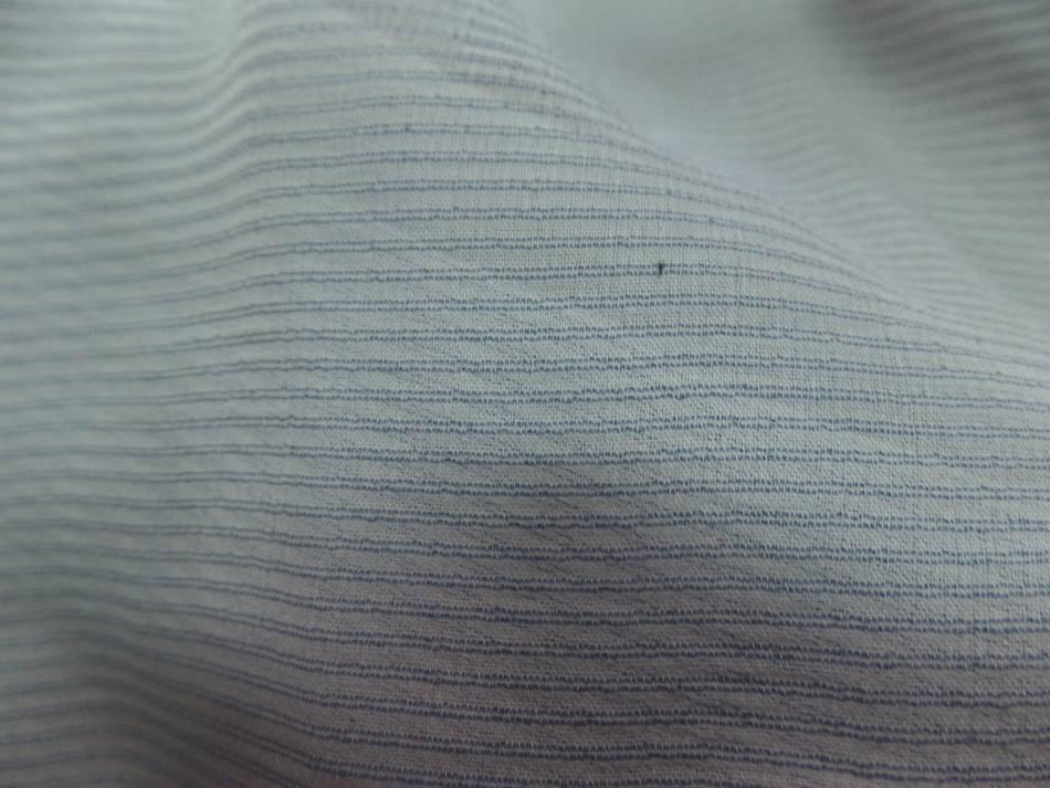 mousseline fine et très souple de couleur de fond blanche avec des fines rayures gris bleu ,