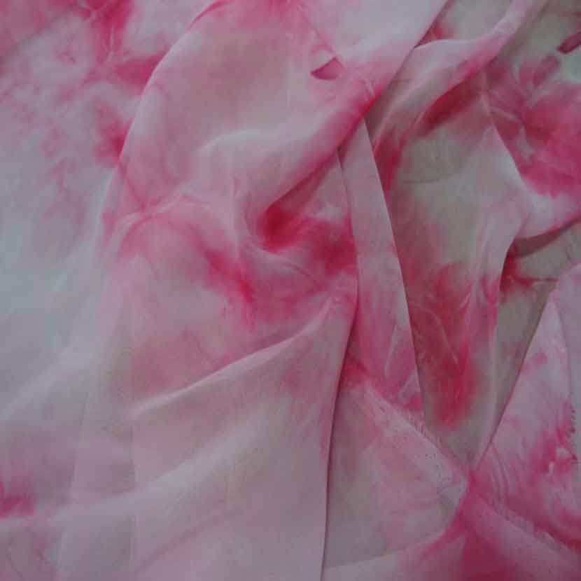 coupon de mousseline de soie imprimé ton rose orange 0.80m