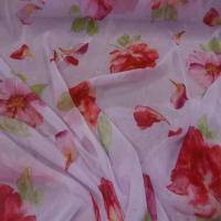 mousseline rose très clair imprimé fleurs