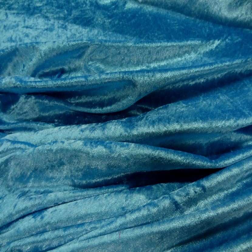 panne de velours bleu turquoise 1.50 m de large ,c est un tissu extensible dans la largeur .idéal pour réaliser des vêtements , idéal pour costume de spectacle ou en décoration. top qualité pas transparent.
