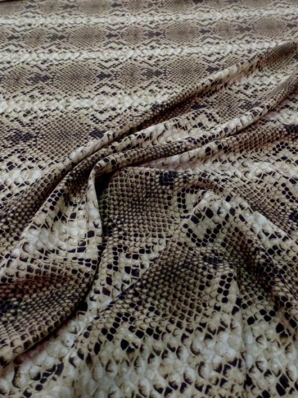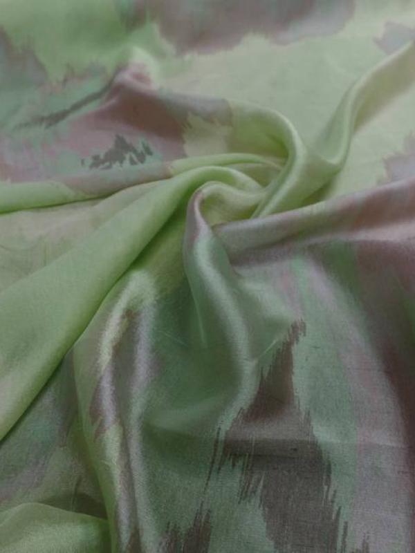 Voile de soie 100% crépon imprimé rétro ton blanc et anis et marron