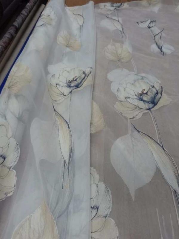 6.5m de voile imprimé fleurs ton mastic,indigo