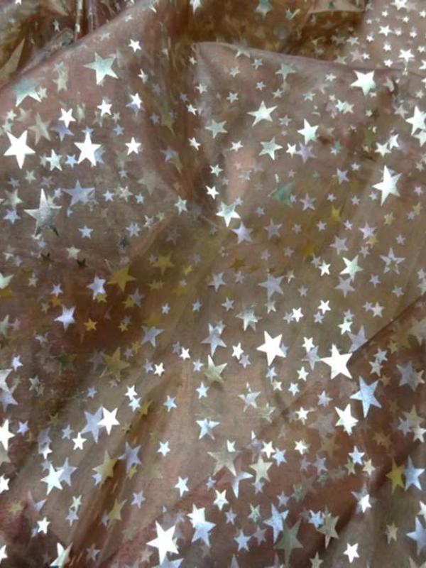 50 m d'Organza bleu foncé a étoiles couleur métal et doré