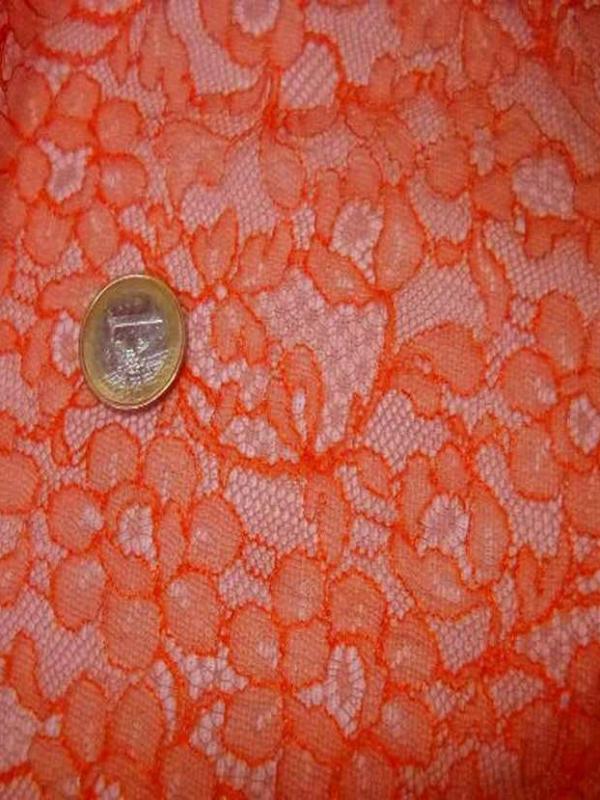 dentelle lycra imprimé fleurs ton orange en 1.50m de large