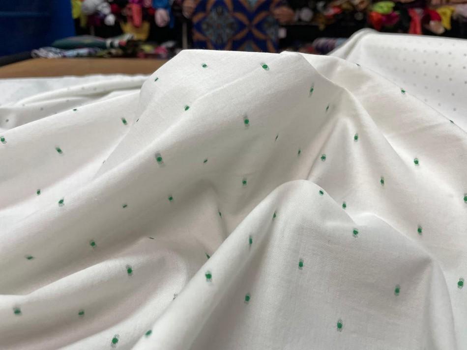 Dupions de coton blanc à motifs brodés vert