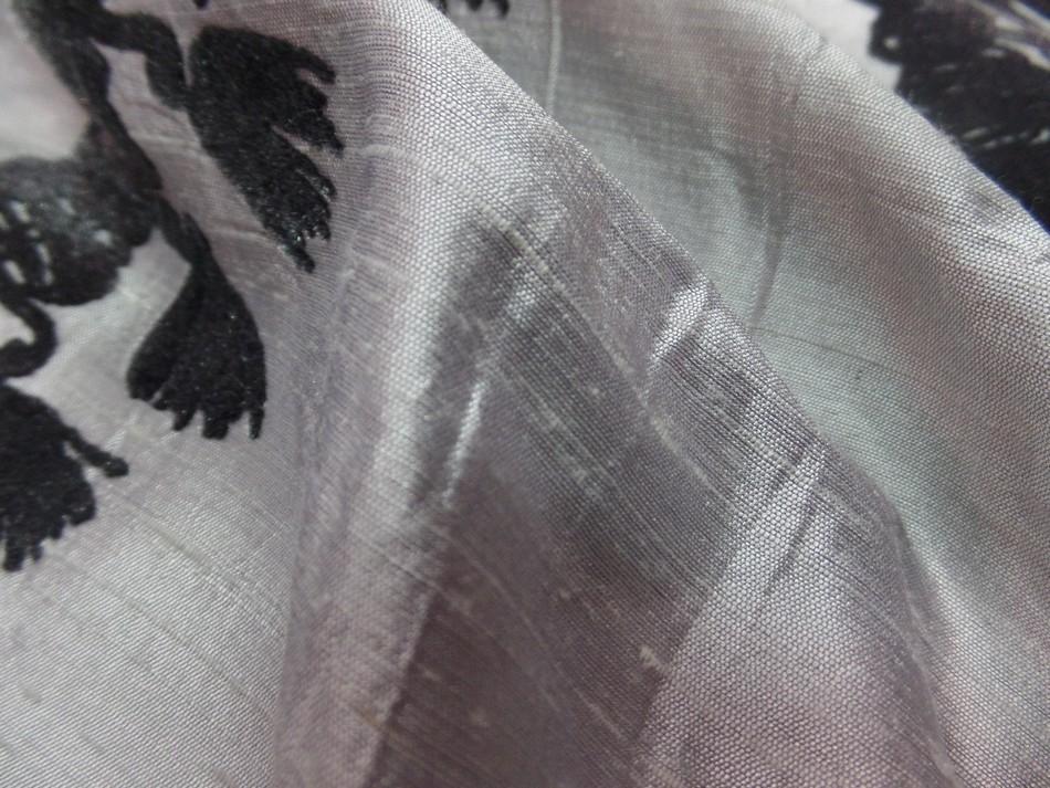 Soie sauvage gris métal a motifs dévoré aspect velours noir