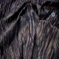 taffetas froissé plissé marron reflets noir en 1.25m de l , c est un tissu fin et souple avec une légère tenue , tissu qui peut servir pour réaliser des vêtements , robe ,déco etc ...