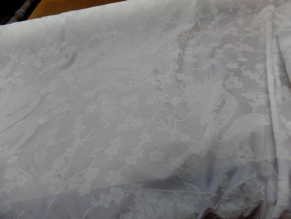 taffetas blanc dévoré velours motifs dragons