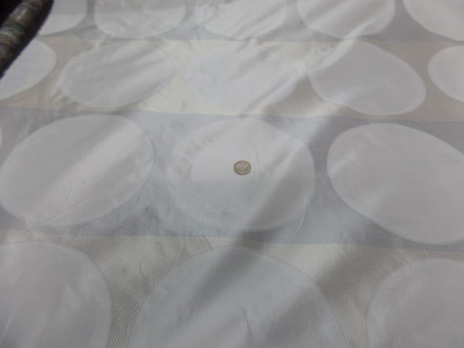 Taffetas blanc, gris brodés motifs rond 20 cm en 1.50m de large