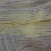 taffetas jaune doré a bandes a chenille en 1.45m de large , c est un tissu fin et souple avec une légère tenue , tissu qui peut servir pour réaliser des vêtements,robe etc ..