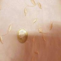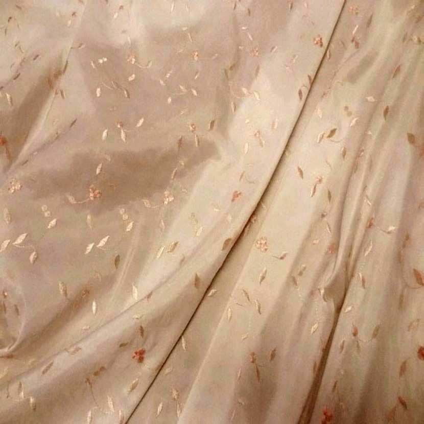 Taffetas ton beige doré brodé fleurs, c'est un tissu fin et souple avec une légère tenue, tissu qui peut servir pour réaliser des vêtements, robe, etc.