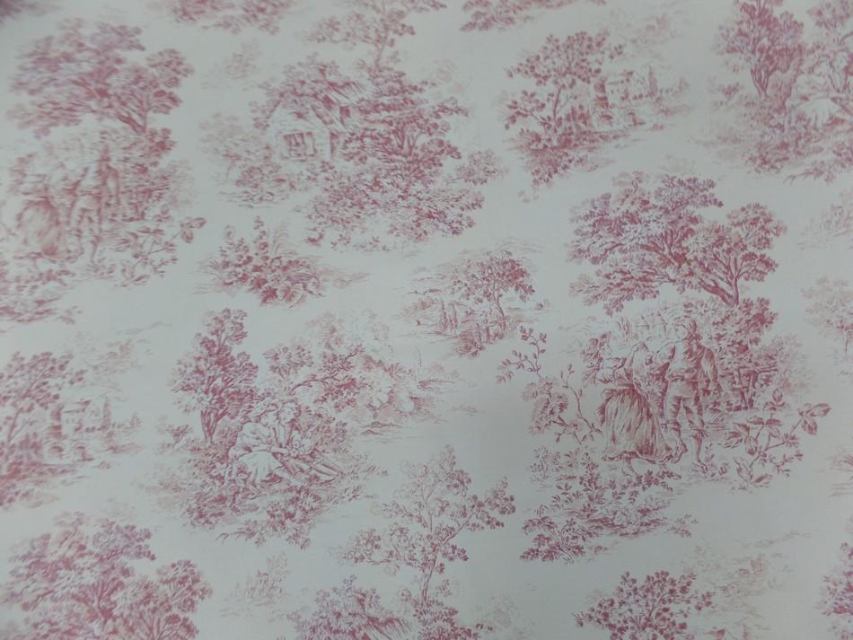 Toile de jouy blanc cassé et rouge en satin coton motifs romantique
