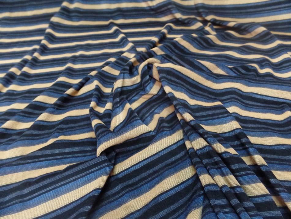 velours éponge a rayures-ton noir bleu safran en 1.90 m de large