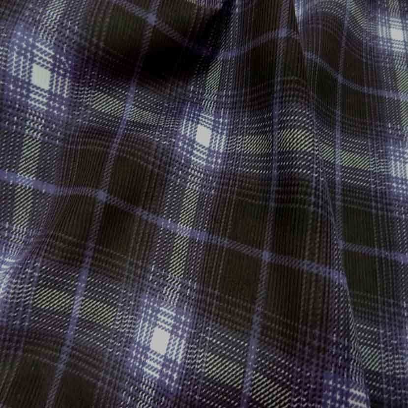 velours milleraies marron a carreaux violet , c est un velours milleraies pas très épais avec peu de tenue et assez souple . il pourrait convenir pour faire des vêtements déco etc...