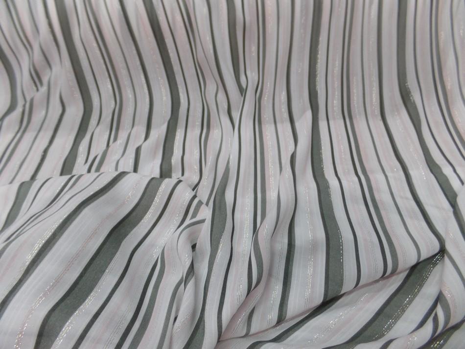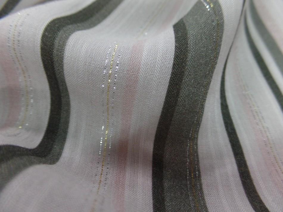 Viscose blanc cassé a rayure ton kaki saumon fils lurex doré et métal