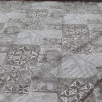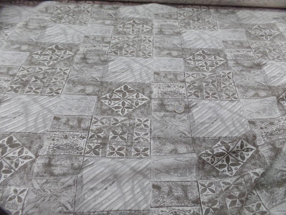 50 m de Lin viscose beige taupe, blanc imprimé carreaux, fleurs en 1.55 m