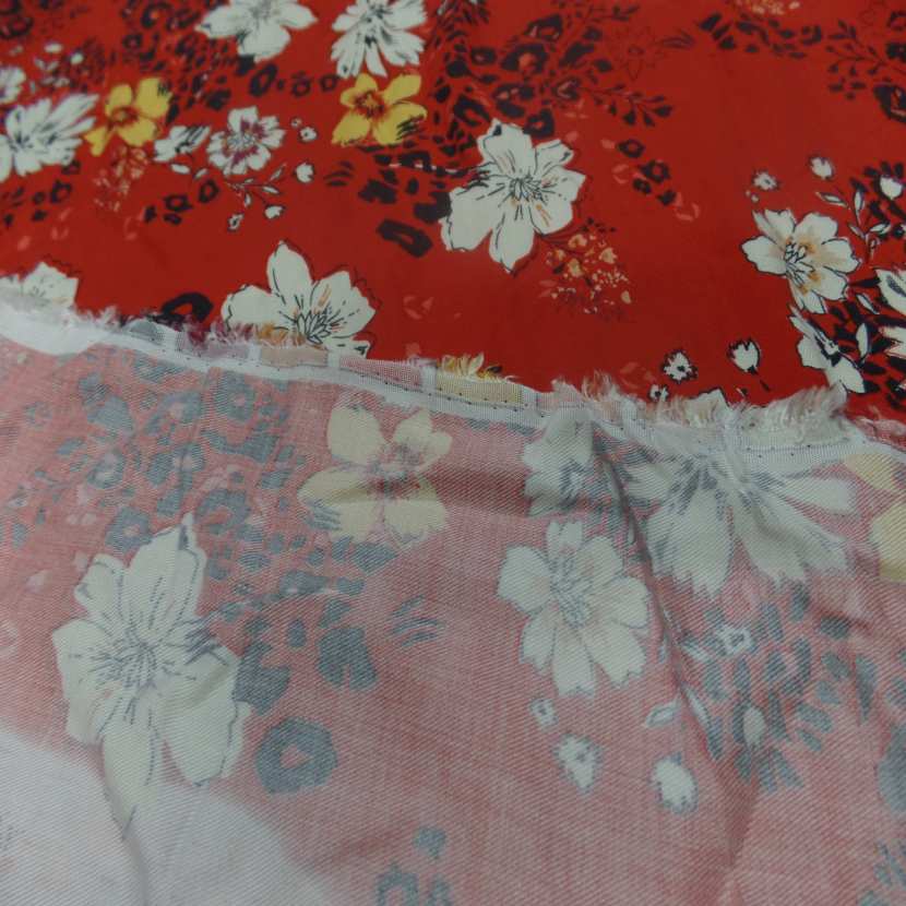 coupon de viscose imprimé ton rouge ,bleu , orange 2.20m