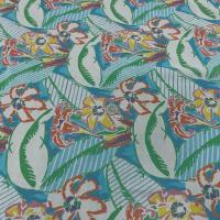 Rouleau 32 m Crépon viscose blanche imprimé ton bleu vert orange fils lurex doré