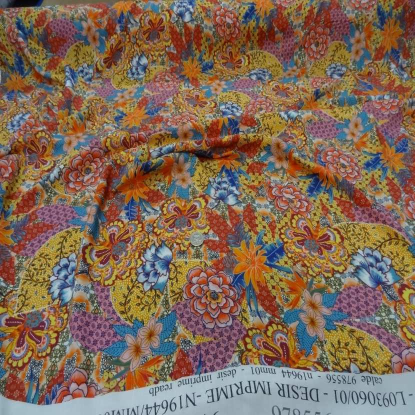 coupon de viscose imprimé ton rouge ,bleu , orange 2.20m